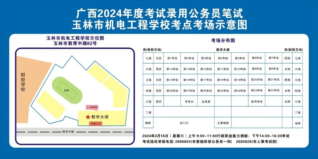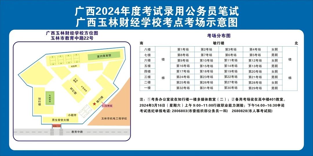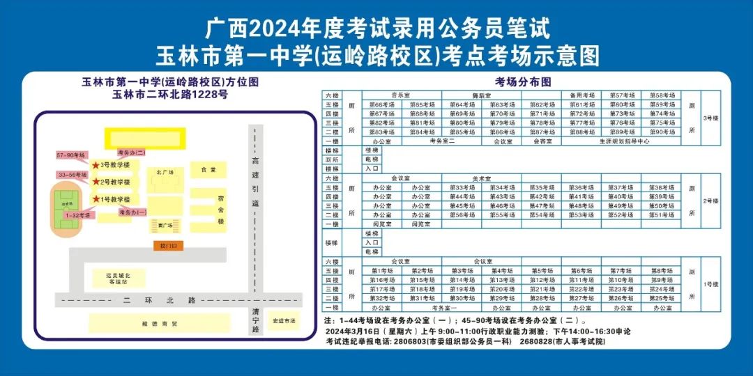 除考試當(dāng)天考生可以進(jìn)入考點(diǎn)外,考生不得提前進(jìn)入考點(diǎn)查看考場(學(xué)校將在大門處擺放考場分布示意圖),玉林考區(qū)10個考點(diǎn)的考場布置情況如下: