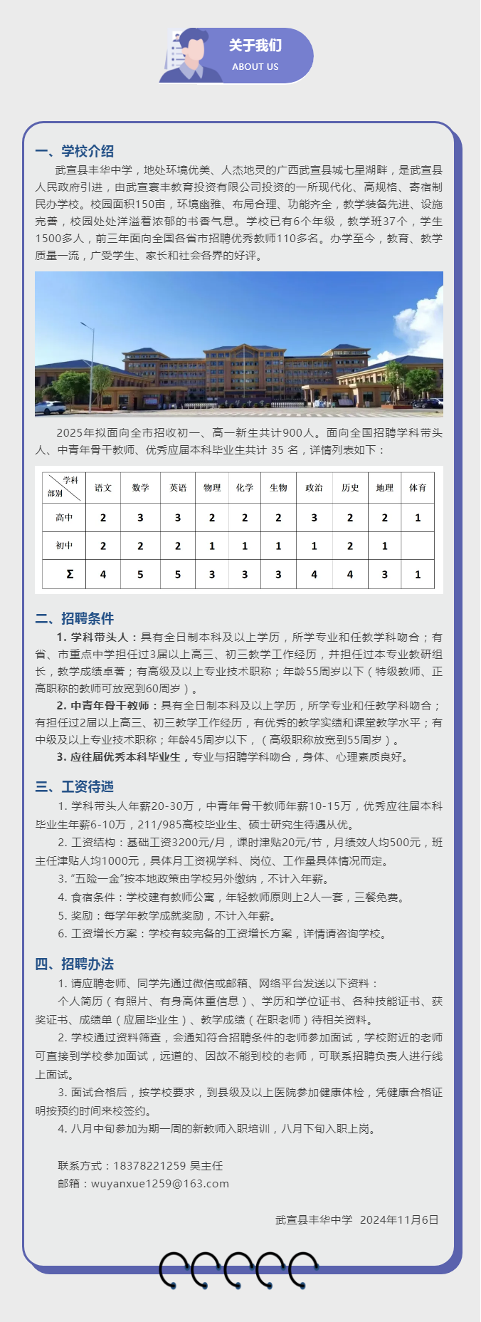 原文標(biāo)題:廣西來賓市武宣縣豐華中學(xué)2025年教師招聘簡章