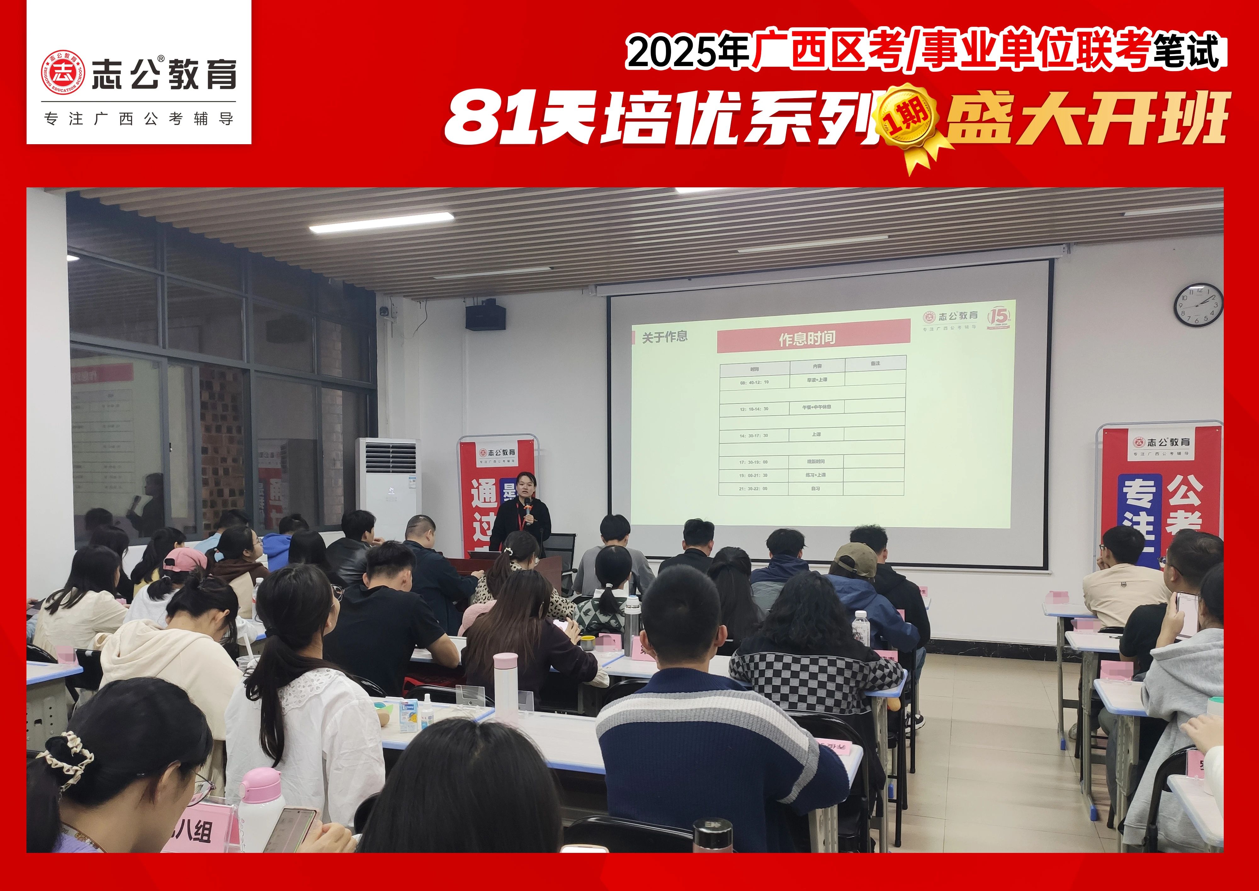 因為今天,志公教育81天1期基地訓練營今天開班了!伴隨著冬日的暖陽,學員們滿懷抓緊時間備考,爭取2025年成功上岸的期待,大家自行前往保稅區(qū)高德公館7棟志公教育長線學習基地,真是適合開啟2025年公考學習新征程的一天。如果說之前的備戰(zhàn)是迷迷瞪瞪的,那今天開始可要打起精神來了,開啟新的征程了,屬于學員們的新學期到了,而一切發(fā)生在眾多學員上岸的夢想基地——志公教育長線封閉學習基地!