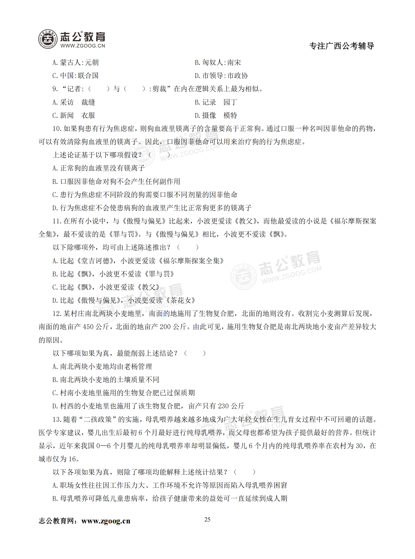 【公考模塊練習(xí)】判斷推理題六(試題)