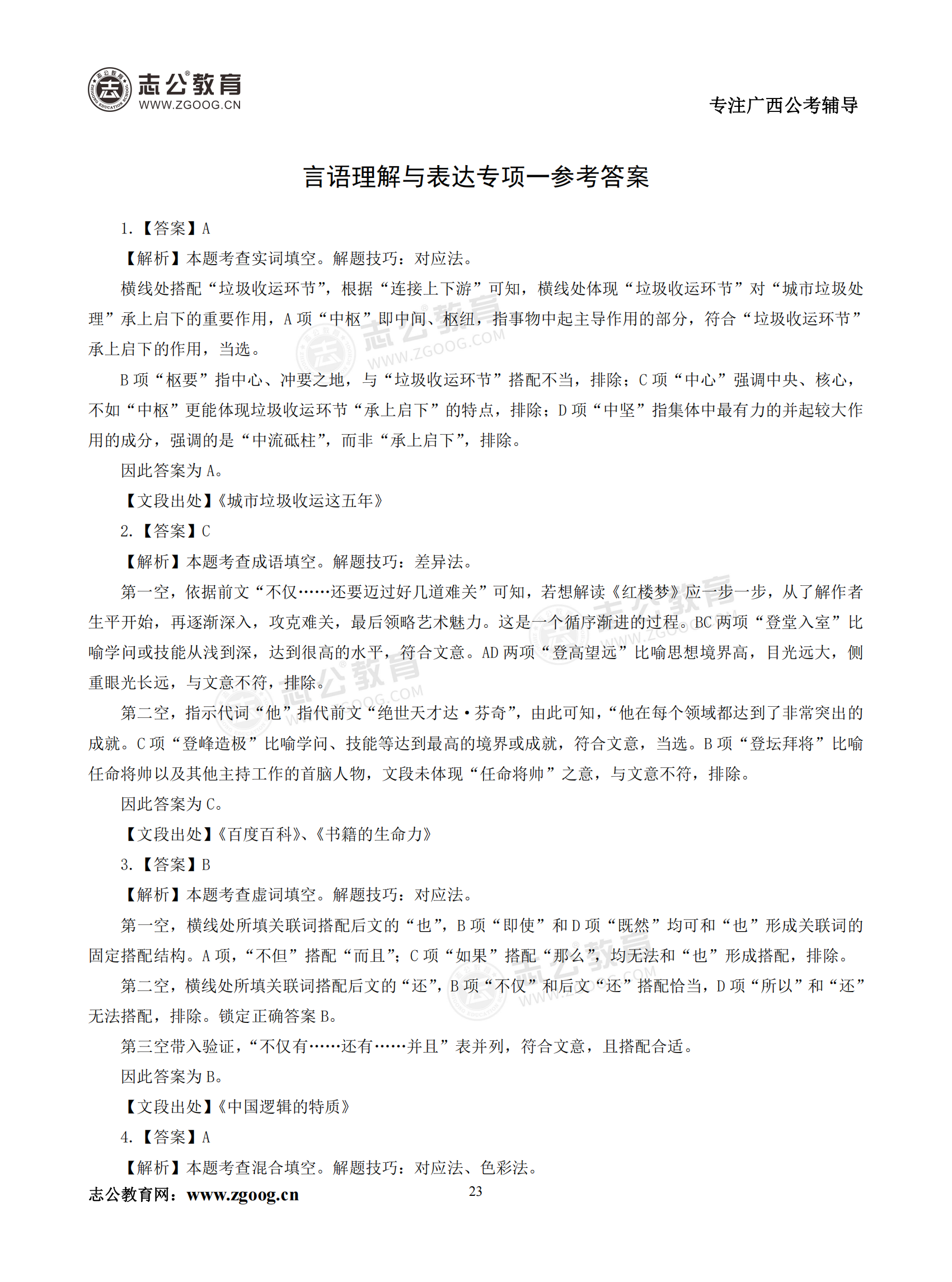 【公考模塊練習(xí)】言語(yǔ)理解題一(答案)
