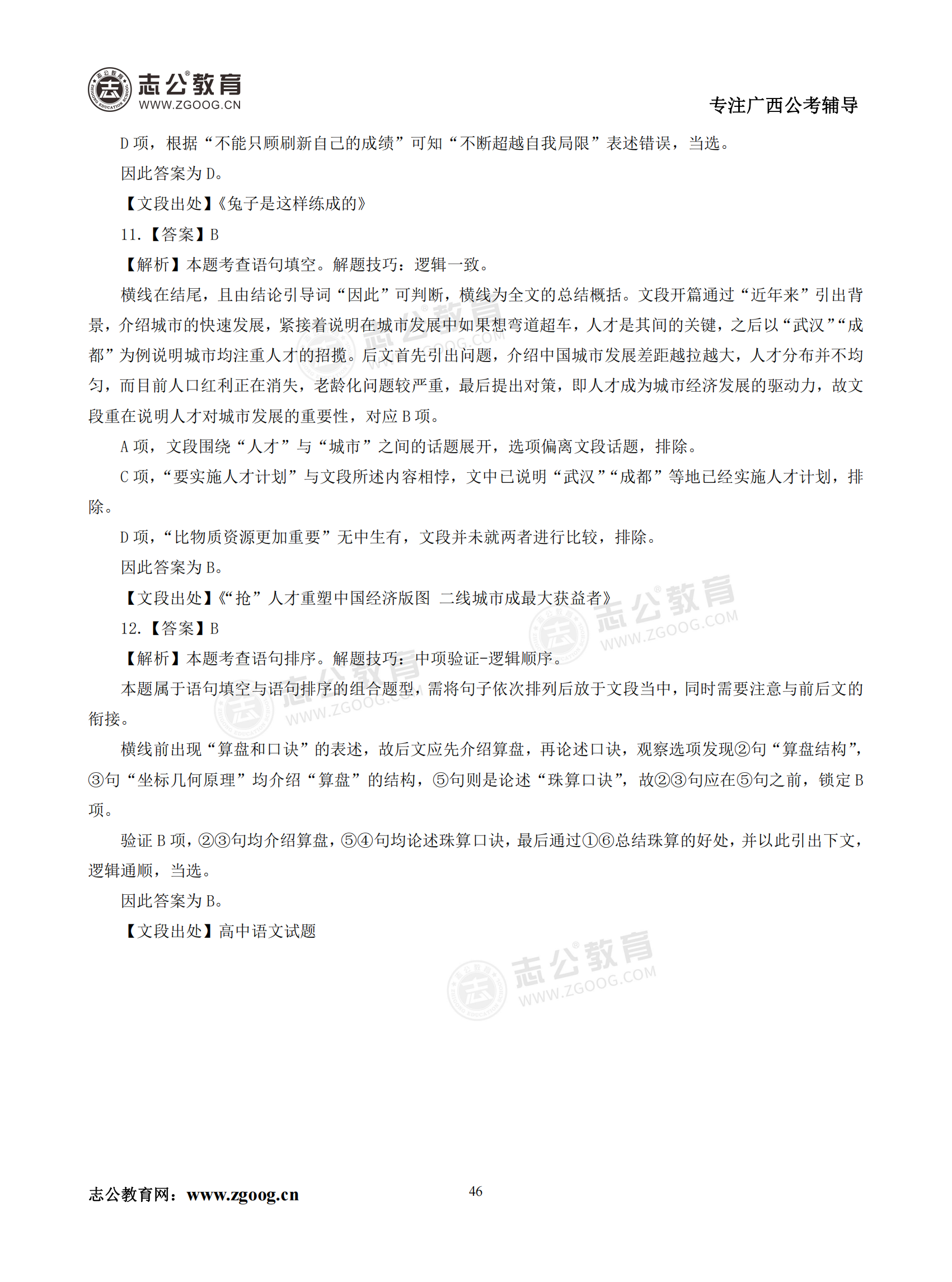 【公考模塊練習(xí)】言語(yǔ)理解題六(答案)