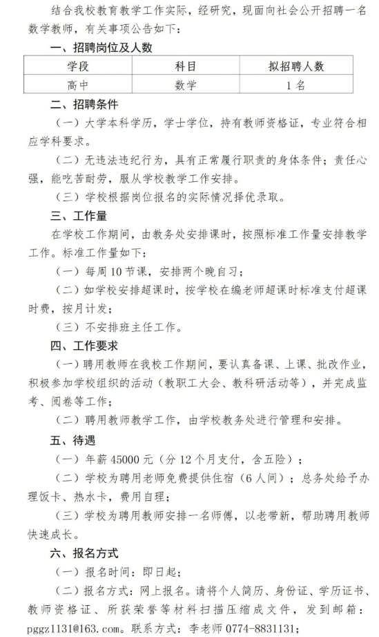 2025年賀州第五高級中學春季學期招聘教師公告