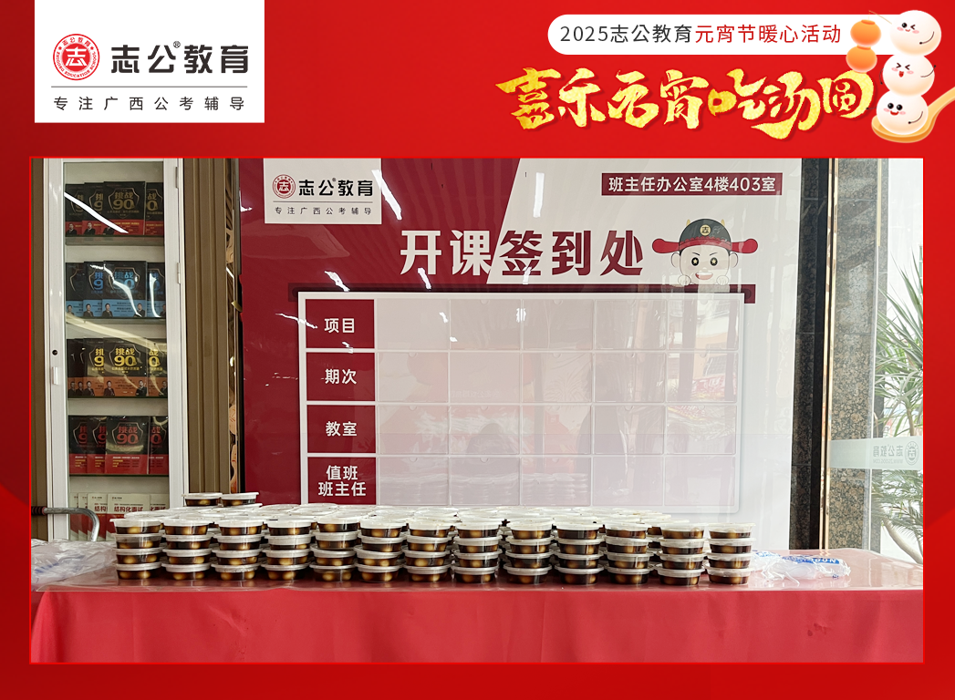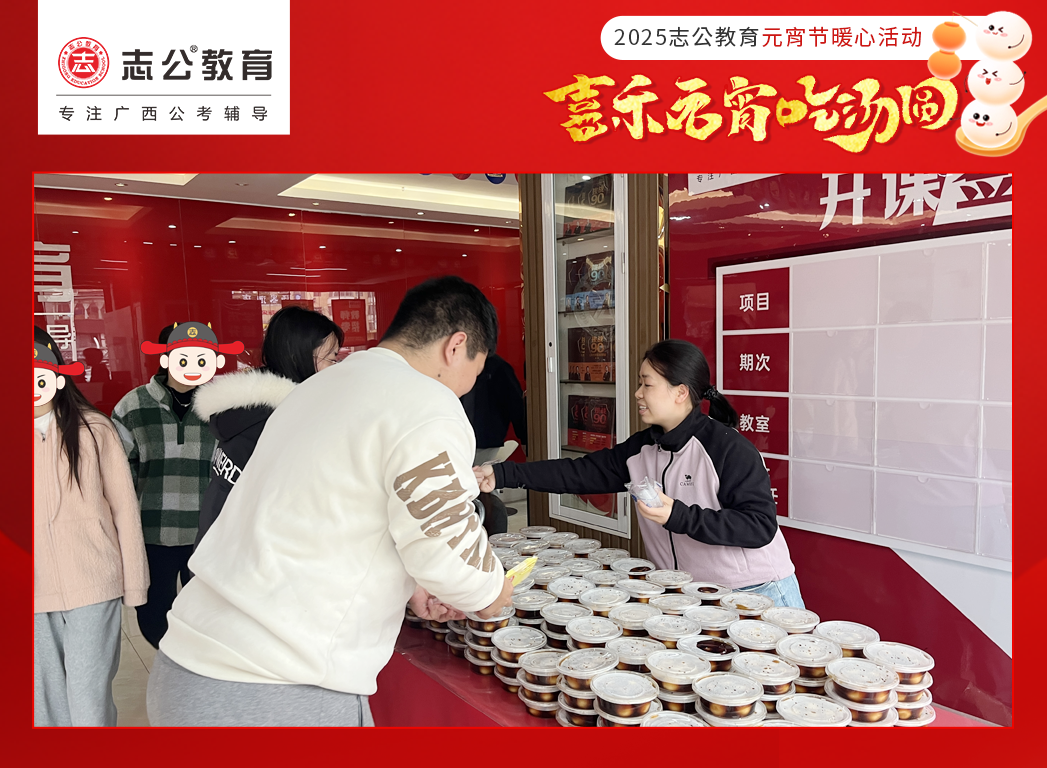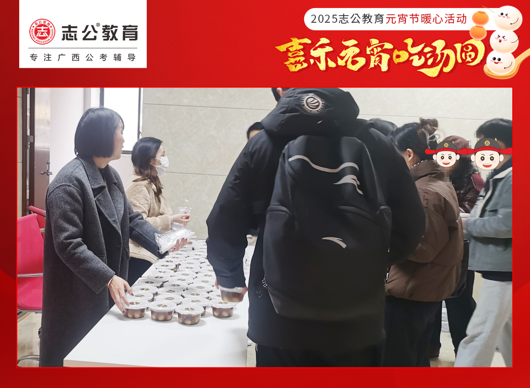 在緊張忙碌的公考備考之路上,每一位學(xué)員都在為了心中的夢想全力以赴 。堆積如山的備考資料,一場接一場的模擬考試,長時間的學(xué)習(xí)讓他們承受著巨大的壓力 。而這份在元宵節(jié)送上的湯圓,就像冬日里的暖陽,夏日里的清風(fēng),為他們帶來了片刻的慰藉 。