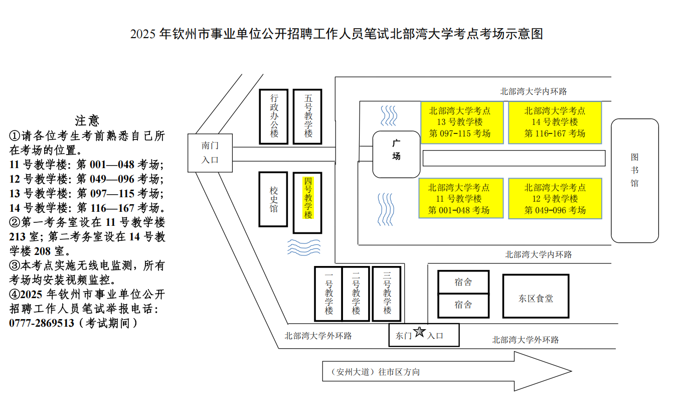 (二)請(qǐng)考生按照本人準(zhǔn)考證上的考點(diǎn)學(xué)校,提前了解學(xué)校所在位置,特別注意不要混淆北部灣大學(xué)考點(diǎn)與北部灣職業(yè)技術(shù)學(xué)??键c(diǎn)。部分考點(diǎn)學(xué)校離市區(qū)有一定距離,請(qǐng)關(guān)注當(dāng)天交通情況和天氣情況,充分考慮路途時(shí)間和天氣因素影響,提前謀劃出行時(shí)間、路線和交通工具,建議提前60分鐘到達(dá)考點(diǎn),以免影響正常入場參加考試。