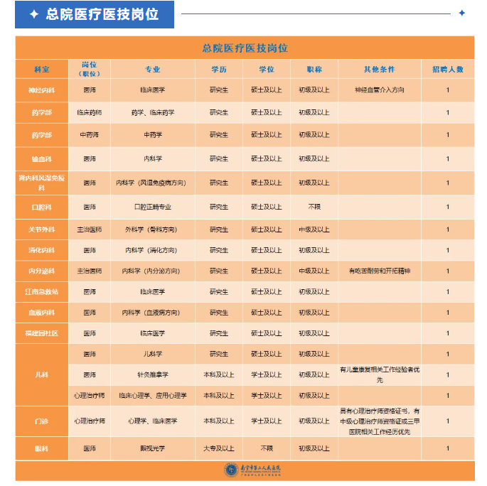 以上崗位均享受醫(yī)院科研獎勵、培訓進修、晉升職務(wù)職稱等權(quán)利,以及五險一金、用餐補助、帶薪年休假、工會福利等待遇。