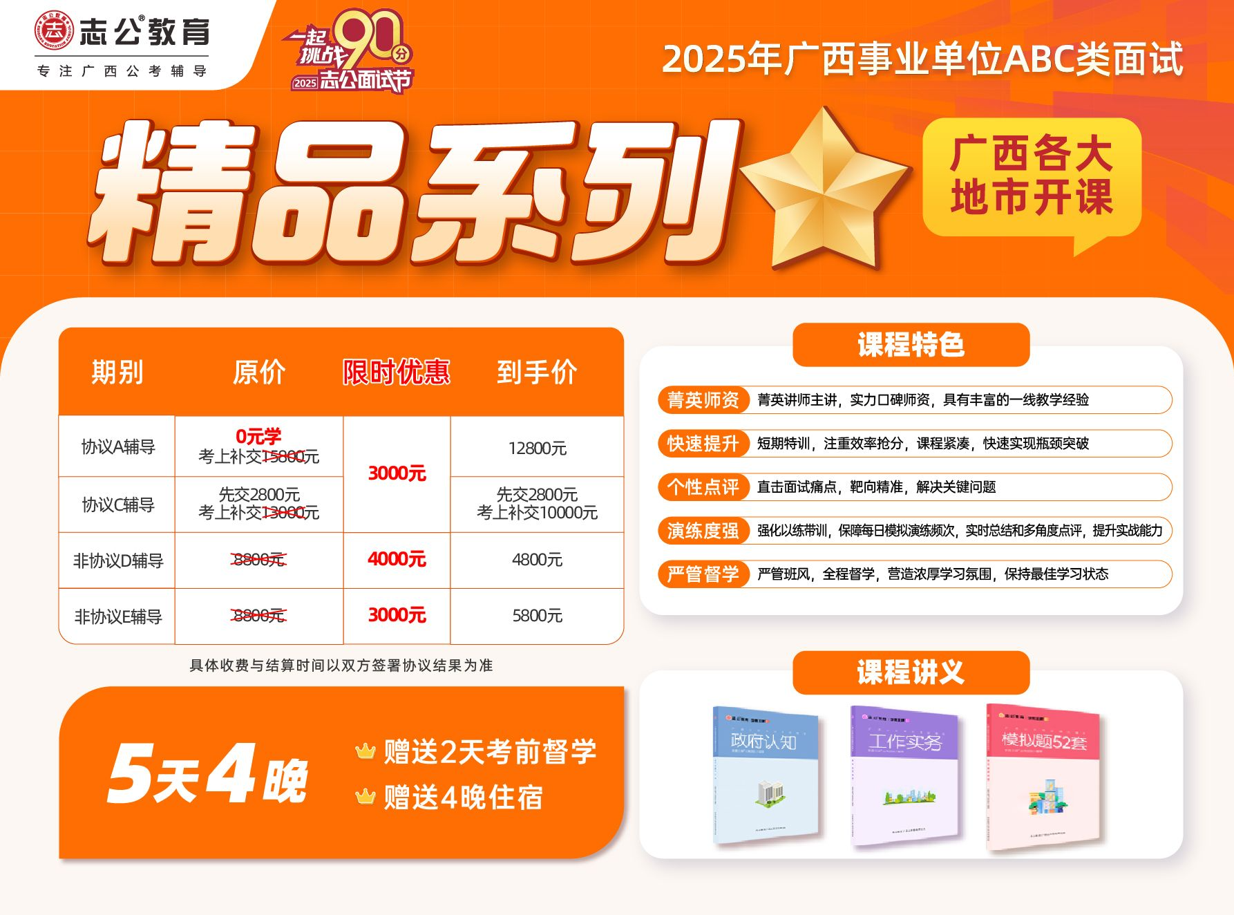 我們的精品系列課程包括協(xié)議A輔導(dǎo)、協(xié)議C輔導(dǎo)、非協(xié)議D輔導(dǎo)和非協(xié)議E輔導(dǎo)四個類別,每個類別都有不同的價格和優(yōu)惠,以滿足不同考生的需求。
