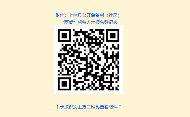 報名方式一:現(xiàn)場報名?,F(xiàn)場報名地點為各鄉(xiāng)鎮(zhèn)黨建辦,現(xiàn)場報名者須填寫《上林縣公開儲備村(社區(qū))“兩委”后備人才報名登記表》(詳見附件,以下簡稱《報名登記表》),并提供本人身份證、學歷學位證書、戶口簿原件及復印件(原件供現(xiàn)場審核;復印件以供存檔,不退回)各1份,近期小二寸正面免冠照片2張。