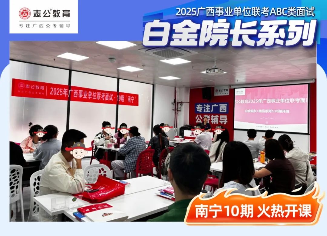 原文標(biāo)題:白金院長、經(jīng)典系列!志公2025廣西事業(yè)單位ABCE類面試4地開班!