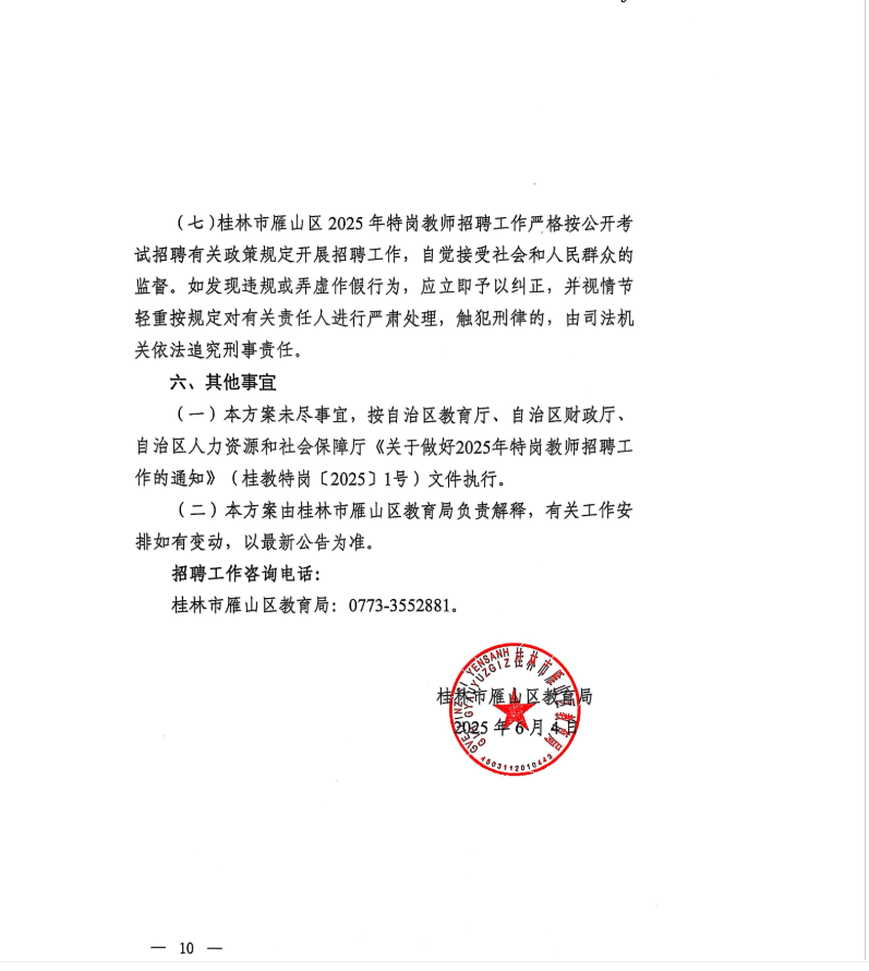 原文標(biāo)題:【教育局公告】桂林市雁山區(qū)2025年特崗教師招聘公告