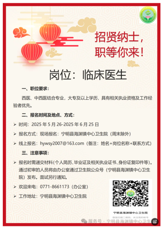 2025年廣西崇左寧明縣海淵鎮(zhèn)中心衛(wèi)生院招聘信息