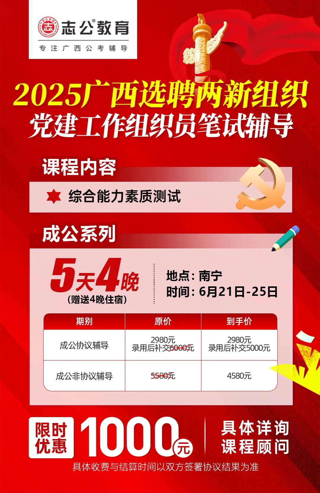報(bào)名入口開(kāi)通!2025年廣西壯族自治區(qū)選聘兩新組織黨建工作組織員今起報(bào)名,附免費(fèi)備考資料!