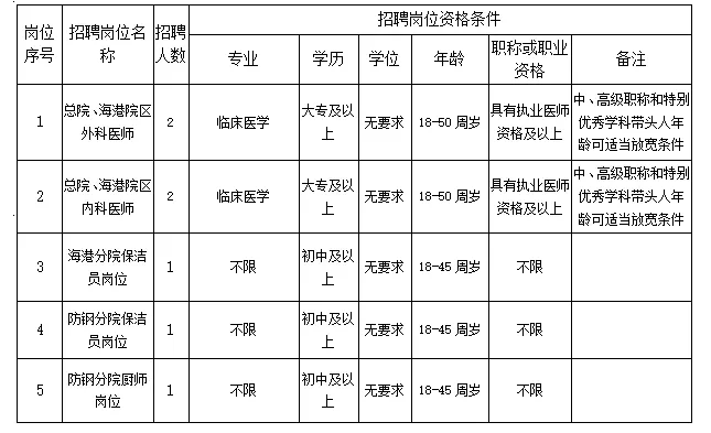 具體招聘辦法由港口區(qū)人民醫(yī)院人事科負責解釋。