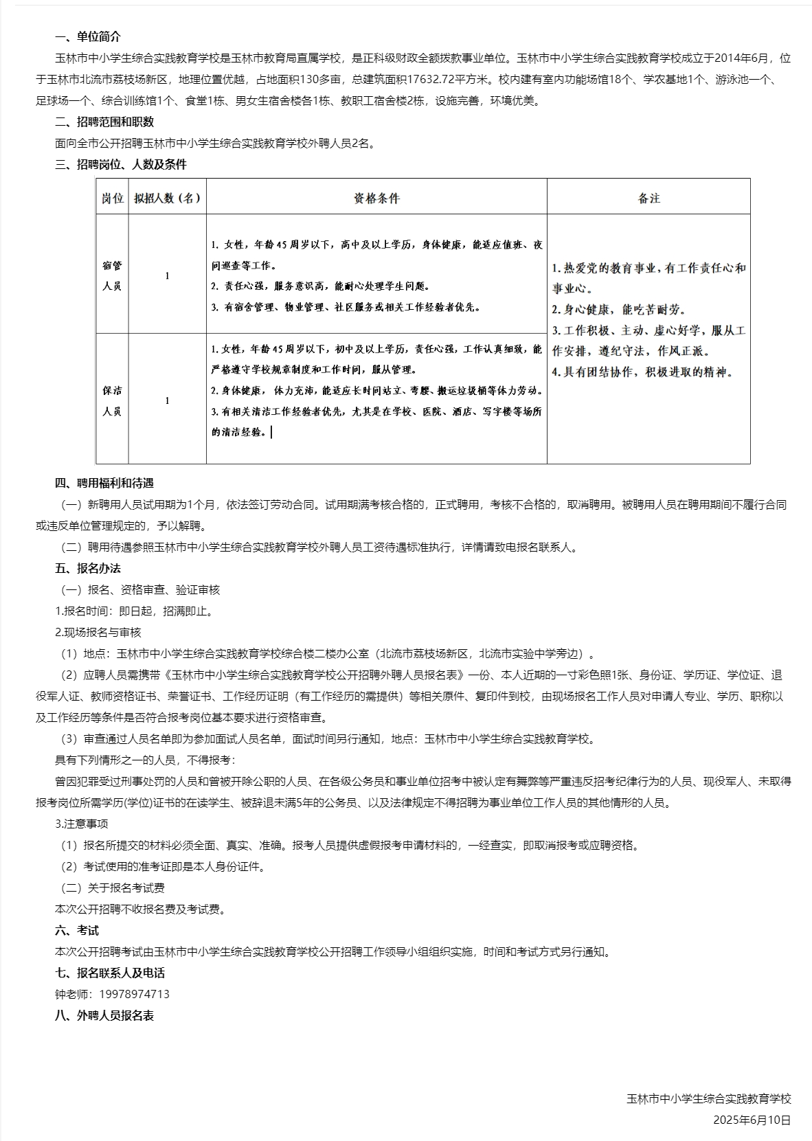 2025年玉林市中小學生綜合實踐教育學校公開招聘外聘人員公告(五)