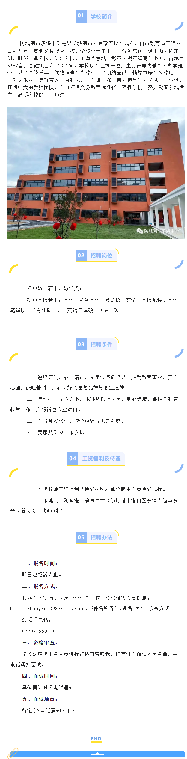 2025年防城港市濱海中學秋季學期臨聘教師若干人