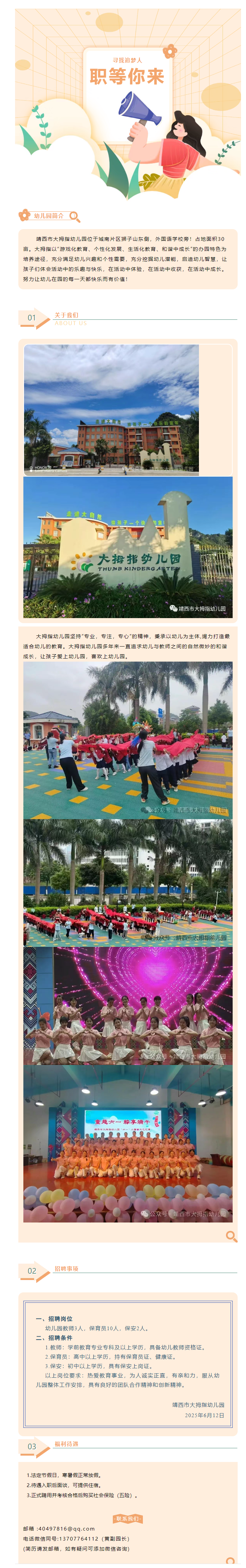 原文標(biāo)題:靖西市大拇指幼兒園招聘公告