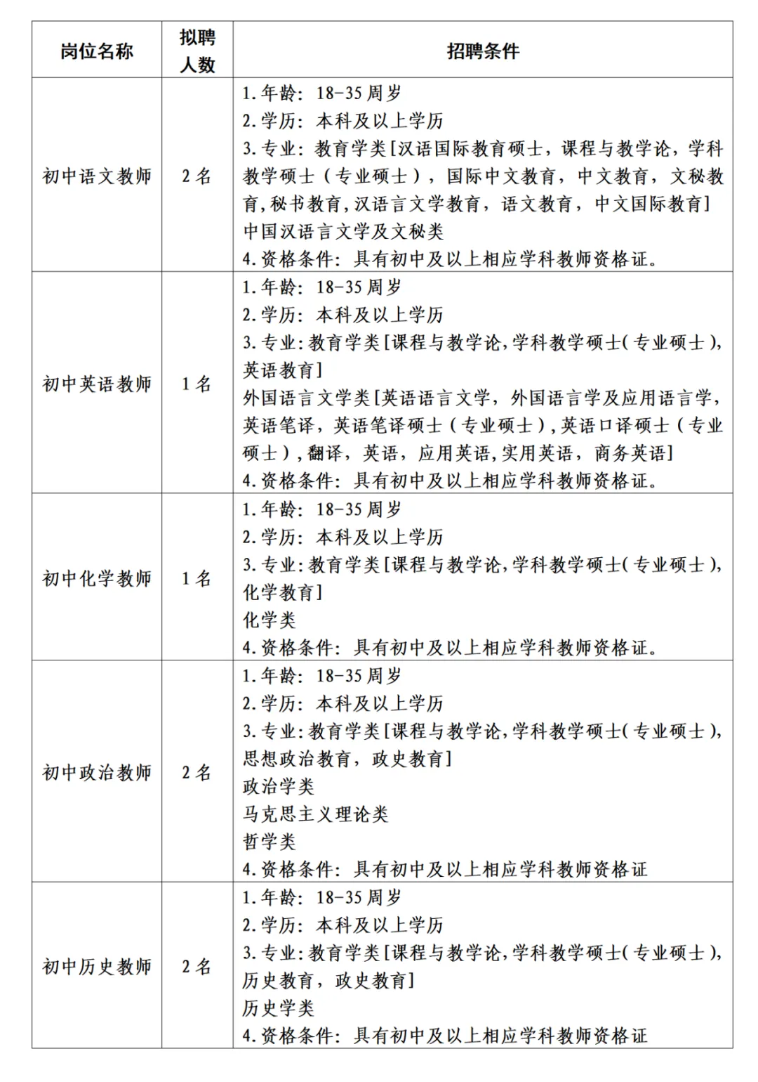 (六)18周歲以上、35周歲以下。有教學(xué)經(jīng)驗豐富、碩士研究生或中級職稱以上的應(yīng)聘人員,年齡可適當(dāng)放寬到45周歲。
