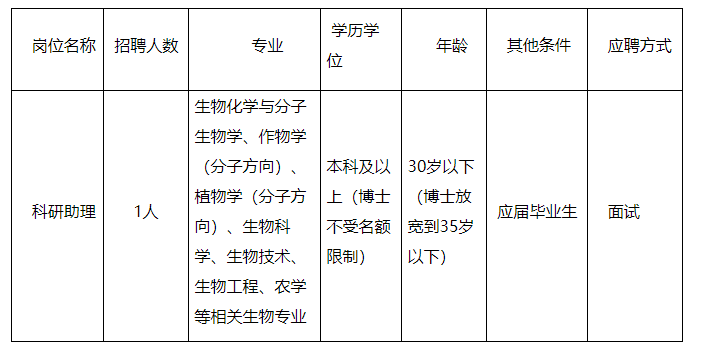 5.可獨立開展科研試驗或撰寫科研論文者,有組織培養(yǎng)和植物遺傳轉(zhuǎn)化經(jīng)驗者優(yōu)先;
