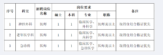 根據(jù)醫(yī)院發(fā)展需要,現(xiàn)面向社會急招神經(jīng)外科、老年醫(yī)學科、急診科醫(yī)師,有關(guān)招聘事項公告如下: