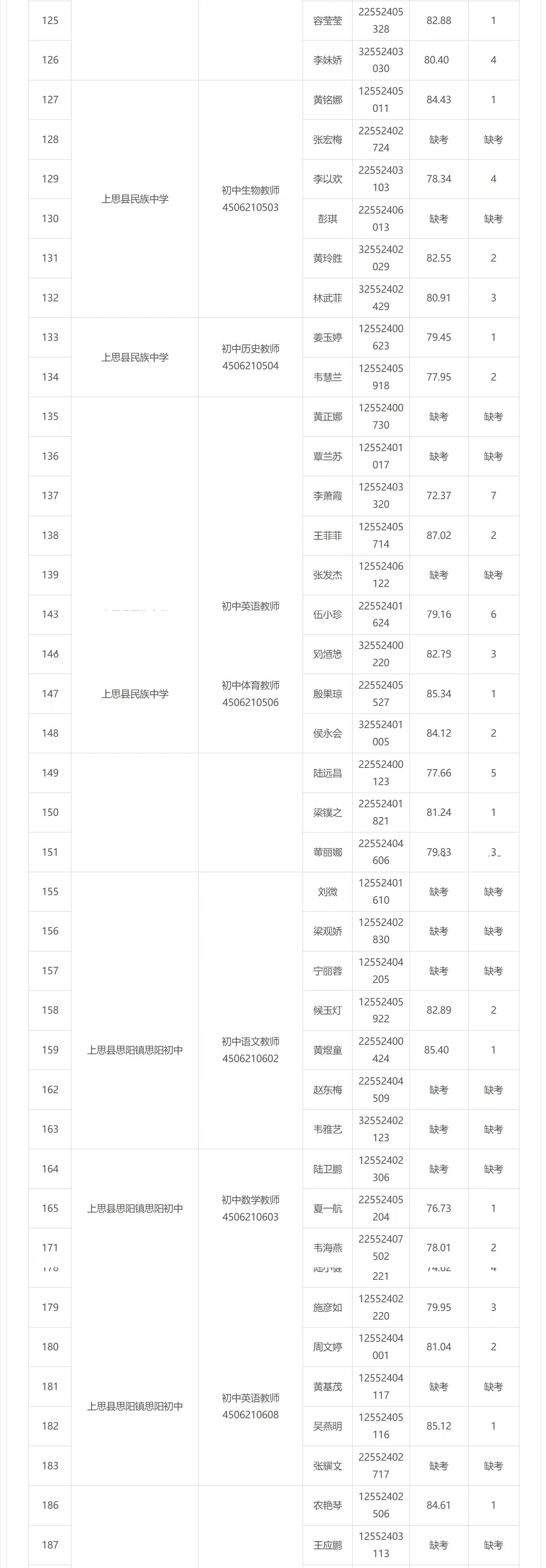 2025年防城港市中小學(xué)教師公開招聘面試成績(jī)公布