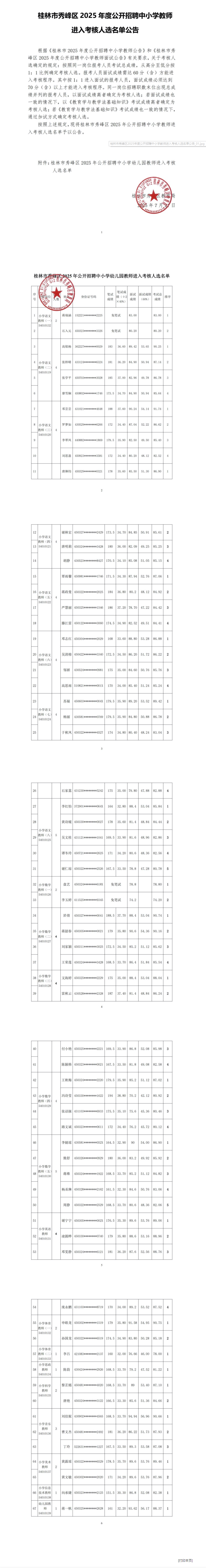 桂林市秀峰區(qū)2025年度公開招聘中小學(xué)教師進入考核人選名單公告