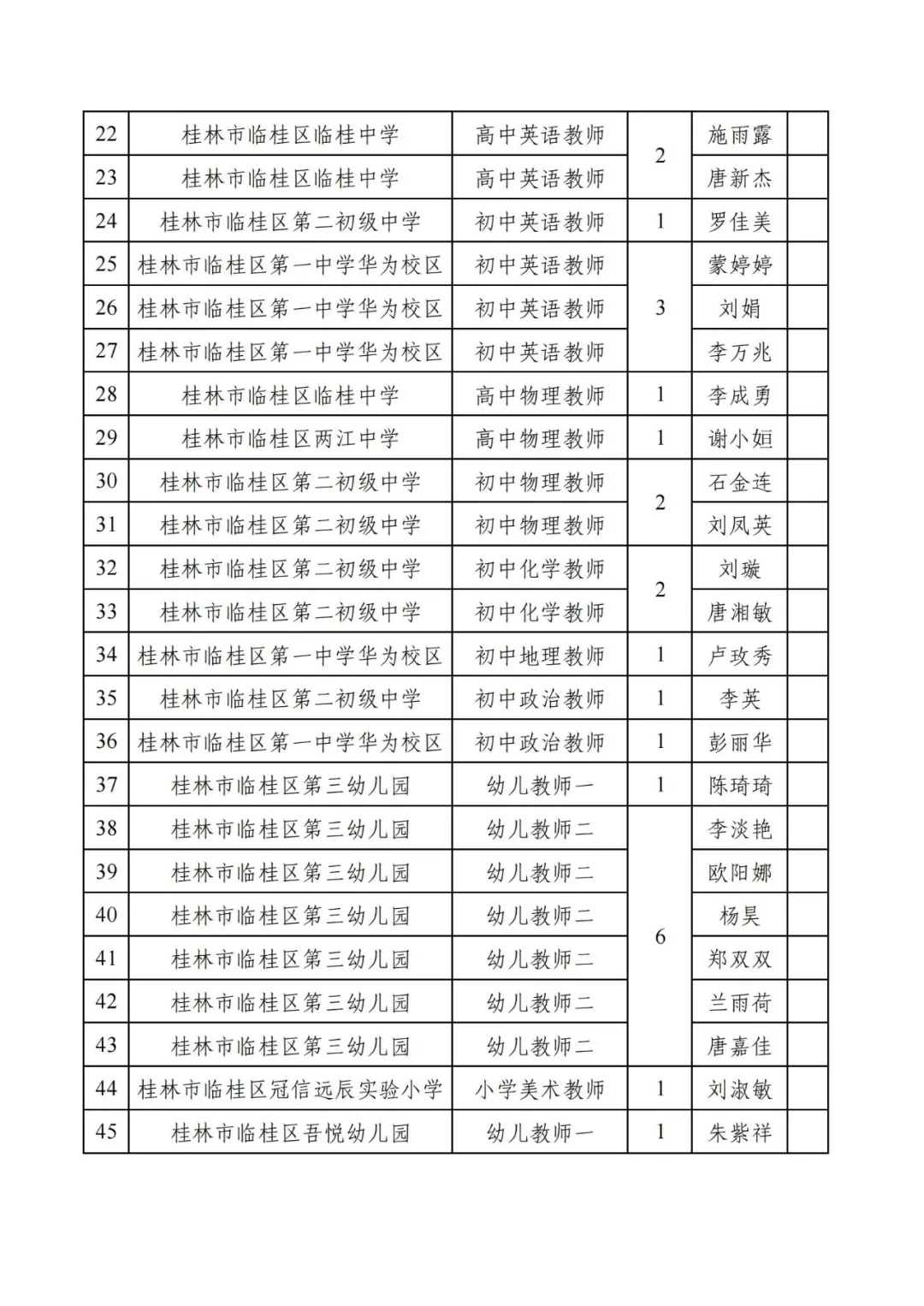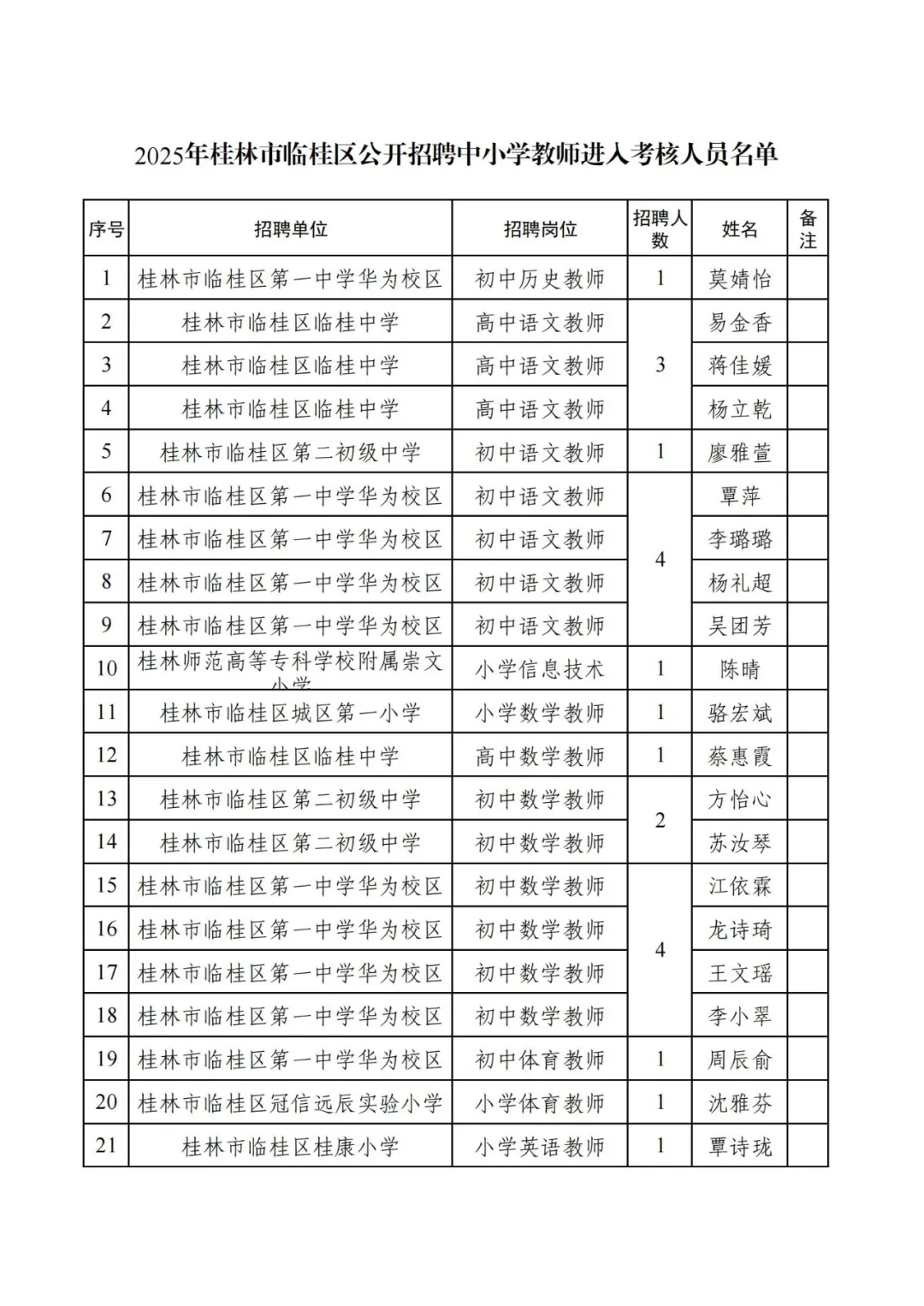 附件:2025年桂林市臨桂區(qū)公開招聘中小學(xué)教師進入考核人員名單