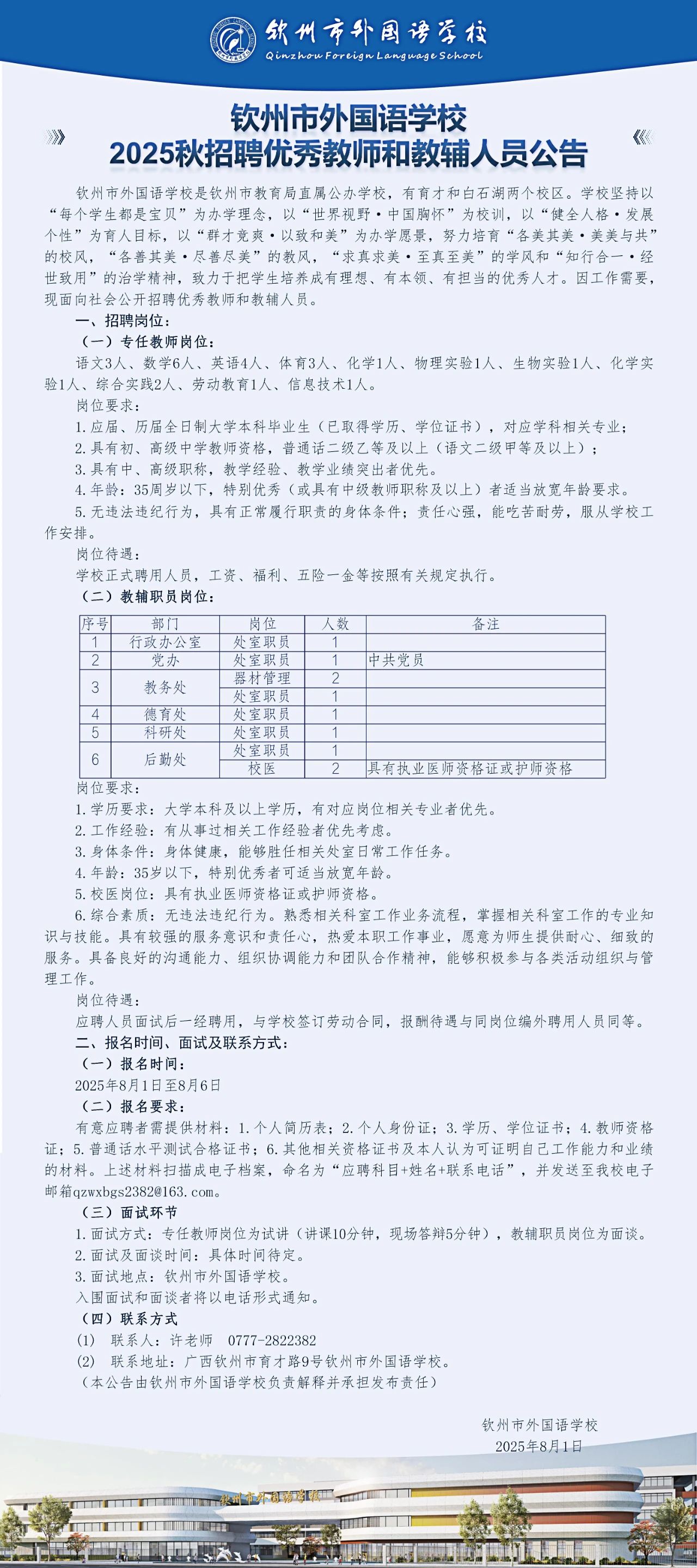 2025年欽州市外國語學校秋招聘優(yōu)秀教師和教輔人員若干人