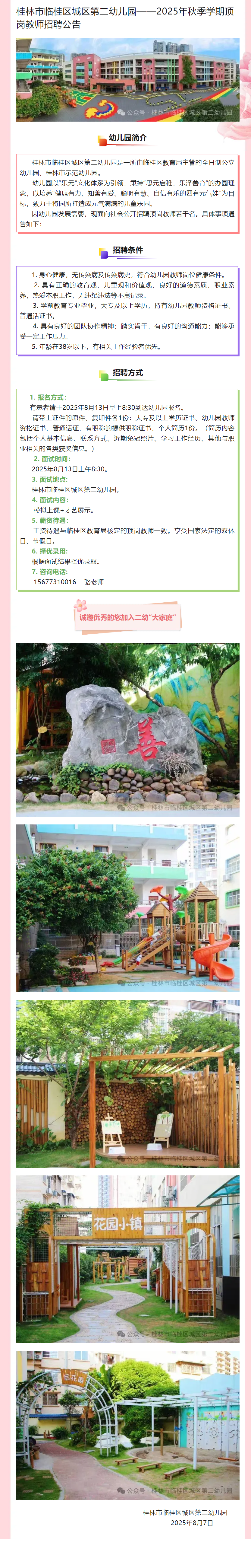 2025年桂林市臨桂區(qū)城區(qū)第二幼兒園頂崗教師招聘公告