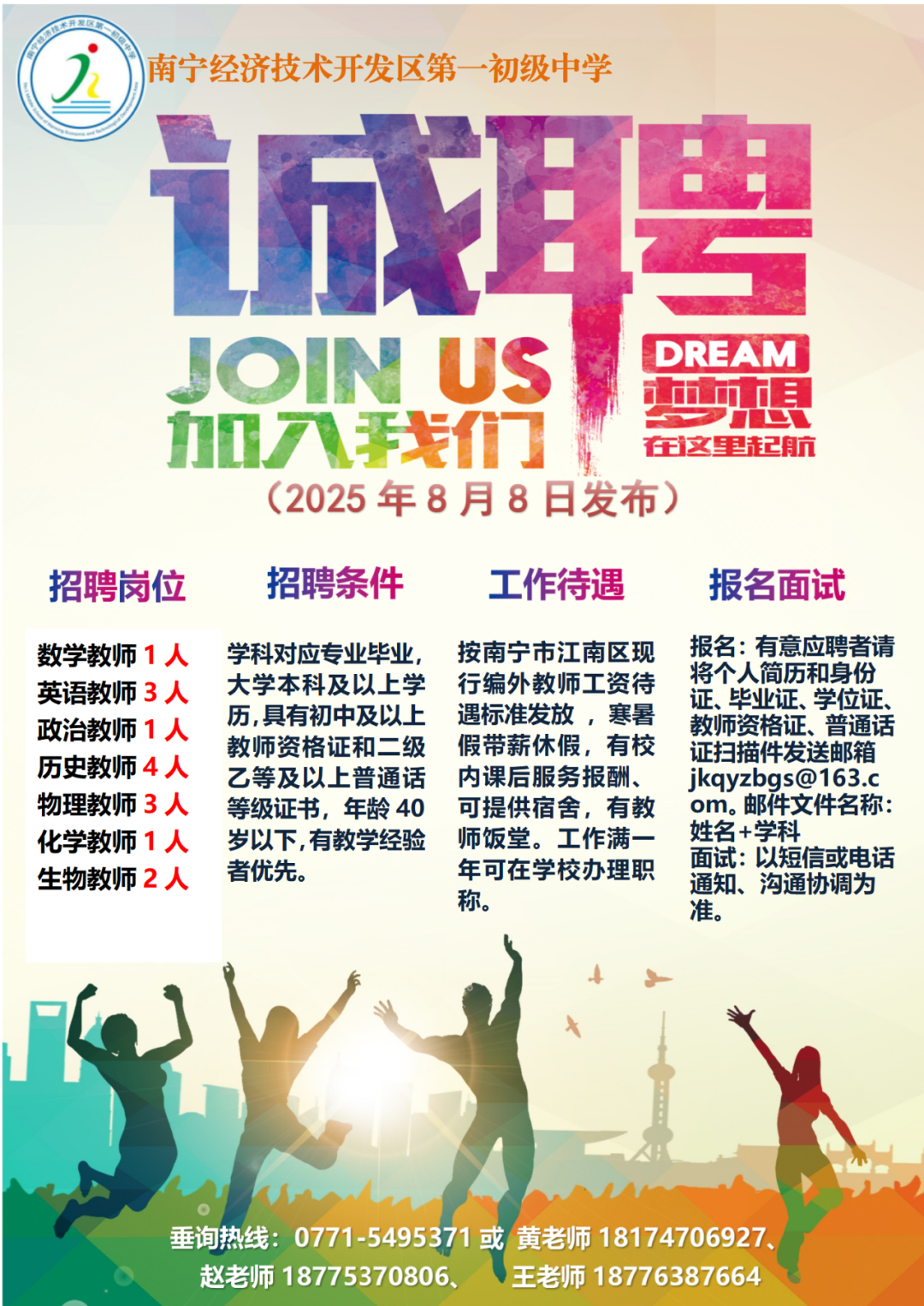 2025年秋季學(xué)期南寧經(jīng)濟技術(shù)開發(fā)區(qū)第一初級中學(xué)公開招聘編外教師15人