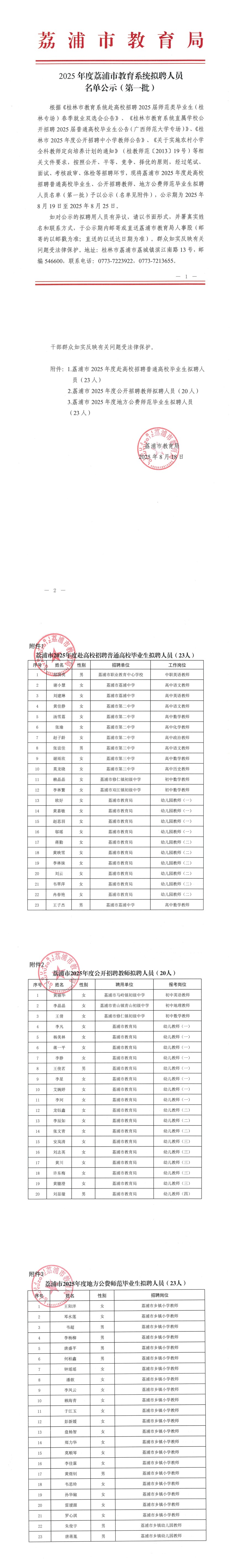 2025年度荔浦市教育系統(tǒng)擬聘人員名單公示(第一批)