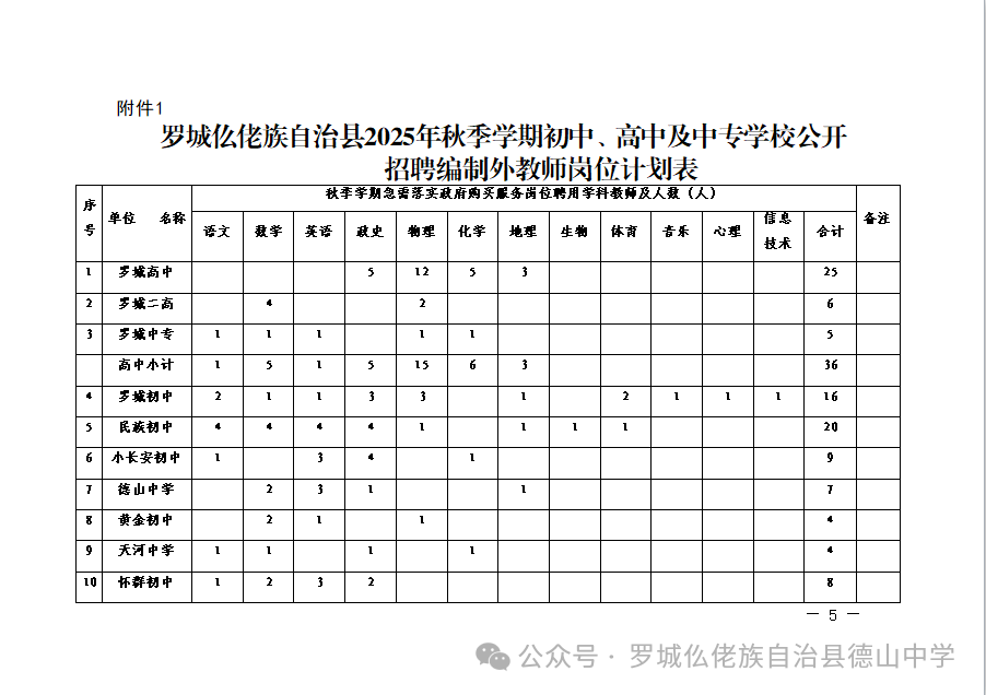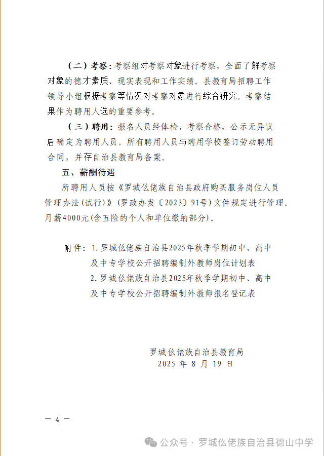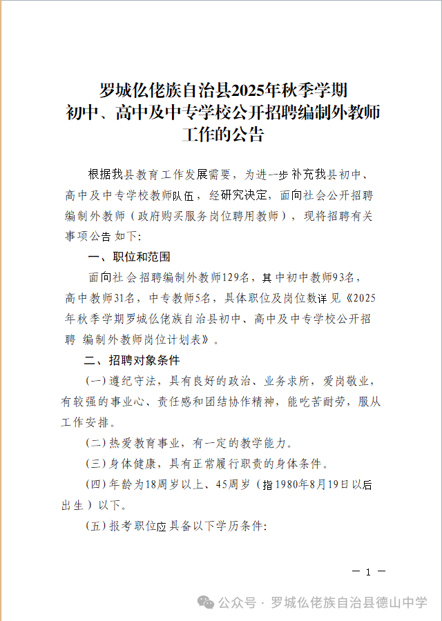 原文標(biāo)題:羅城仫佬族自治縣2025年秋季學(xué)期初中、高中及中專(zhuān)學(xué)校公開(kāi)招聘編制外教師工作的公告