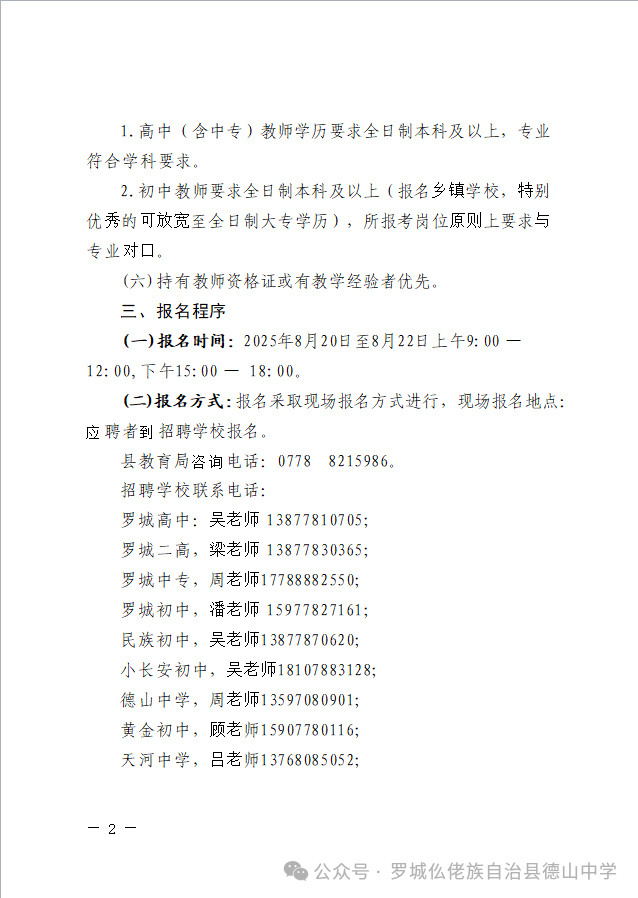 2025年秋季學(xué)期河池羅城仫佬族自治縣初中、高中及中專(zhuān)學(xué)校公開(kāi)招聘編制外教師129人