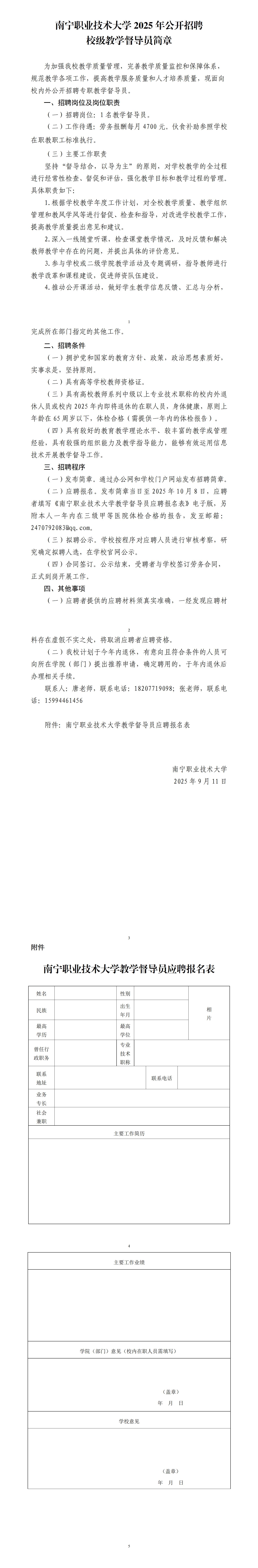 2025年南寧職業(yè)技術(shù)大學(xué)公開(kāi)招聘校級(jí)教學(xué)督導(dǎo)員簡(jiǎn)章
