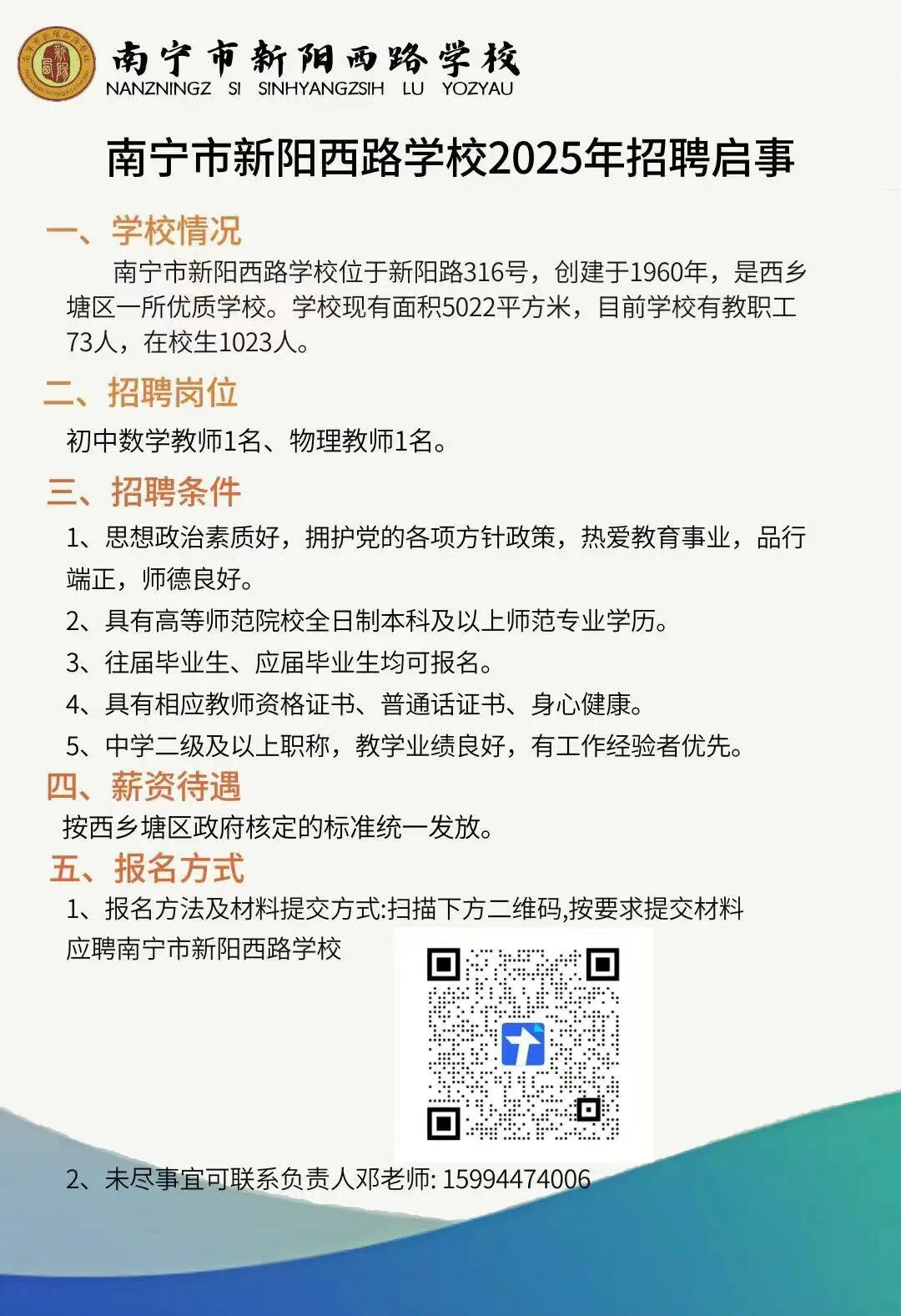 2025年南寧市新陽西路學(xué)校2025年招聘2人