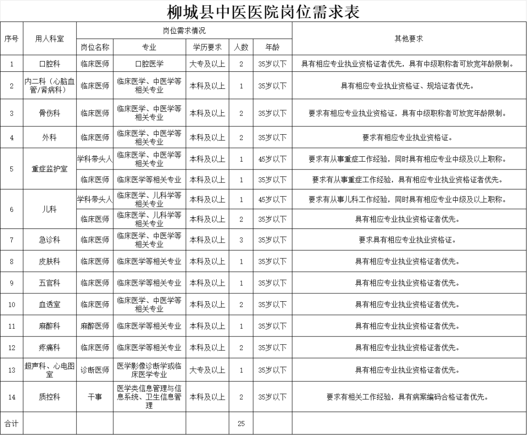 2025年柳城縣中醫(yī)醫(yī)院多個崗位正在招聘