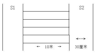 場(chǎng)地器材:10米長(zhǎng)的直線跑道若干,在跑道的兩端線(S1和S2)外30厘米處各劃一條線(圖1)。木塊(5厘米×10厘米)每道3塊,其中2塊放在S2線外的橫線上,一塊放在S1線外的橫線上。秒表若干塊,使用前應(yīng)進(jìn)行校正。