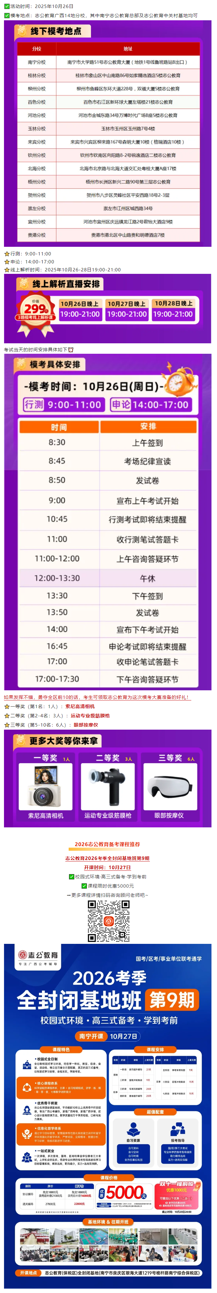 模考大賽的價(jià)值不止于排名,更在于幫大家提前適應(yīng)節(jié)奏、找準(zhǔn)薄弱項(xiàng),這些獎(jiǎng)勵(lì)是認(rèn)可,更是激勵(lì)!愿大家?guī)е@份動(dòng)力繼續(xù)沖刺備考目標(biāo),頒獎(jiǎng)儀式落幕,但備考沖刺的號(hào)角剛剛吹響,未參與本次模考的考生無(wú)需遺憾,志公教育下一期??即筚惣磳?dòng)!依舊是全真考場(chǎng)復(fù)刻、專業(yè)師資護(hù)航、豐厚獎(jiǎng)品加持!立刻報(bào)名參與大賽吧,說(shuō)不定下一個(gè)登臺(tái)領(lǐng)獎(jiǎng)的就是你!