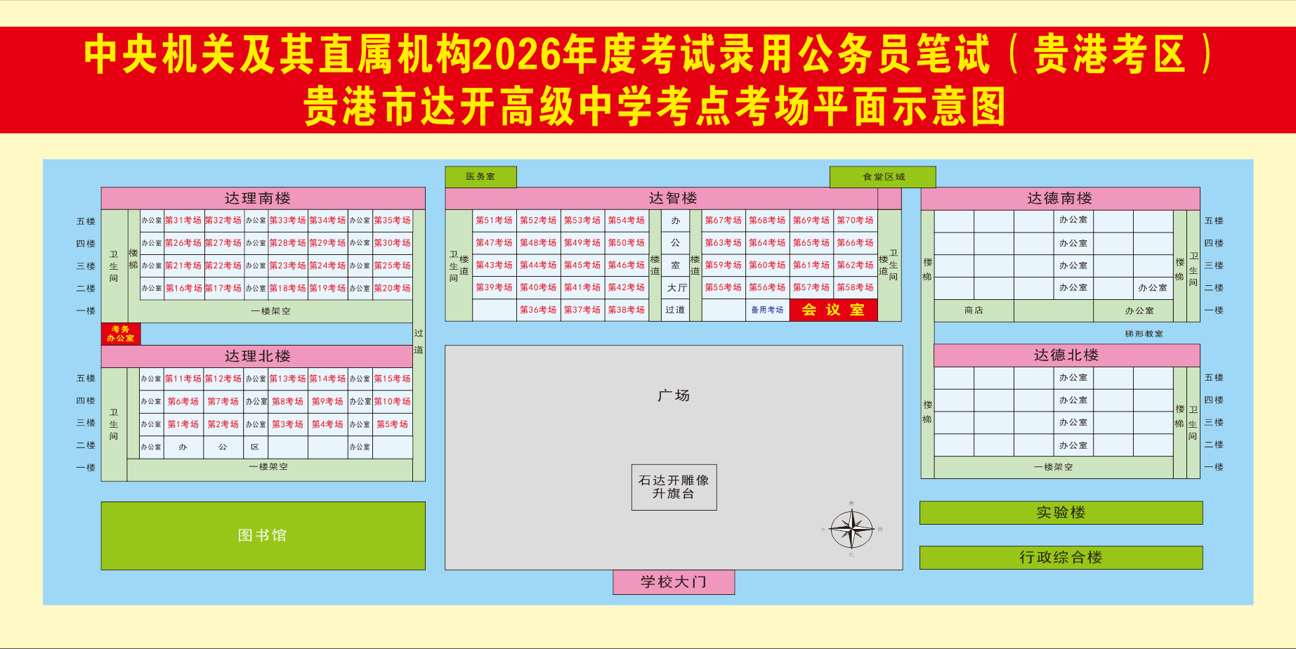 2026年度國家公務(wù)員筆試(貴港考區(qū))溫馨提示及考場(chǎng)分布