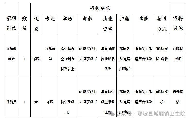原文標(biāo)題:【招聘信息】那坡縣城廂鎮(zhèn)衛(wèi)生院公開(kāi)招聘編外工作人員公告